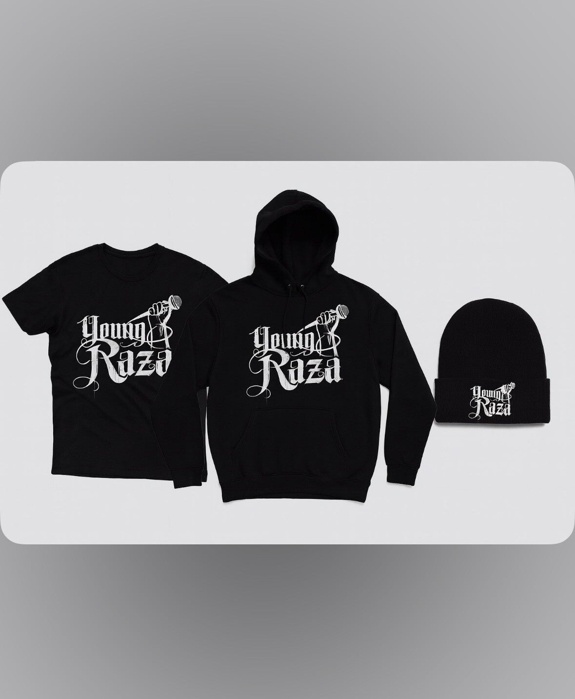 Show your support and style with Young Raza's official merchandise. From limited edition apparel to unique accessories, each item is designed with passion and quality. Explore the collection and find something that resonates with your love for music.